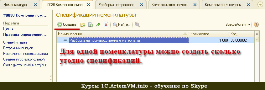 Работа со спецификациями номенклатуры в 1С Бухгалтерии, изучение особенностей применения спецификаций в разных случаях рассматривается в онлайн курсе 1С. С особенностями и преимуществами онлайн занятий вы можете ознакомиться здесь (+ видео).
