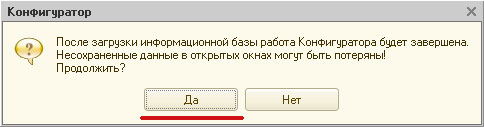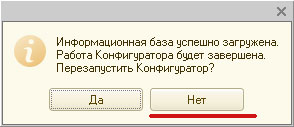 В окне, показанном выше, проще нажать Нет, поскольку Конфигуратор нам больше не нужен. После нажатия кнопки Нет Конфигуратор закроется. Теперь запускайте программу в режиме 1С Предприятие и проверяйте работоспособность базы. Как видите, сложного ничего нет.